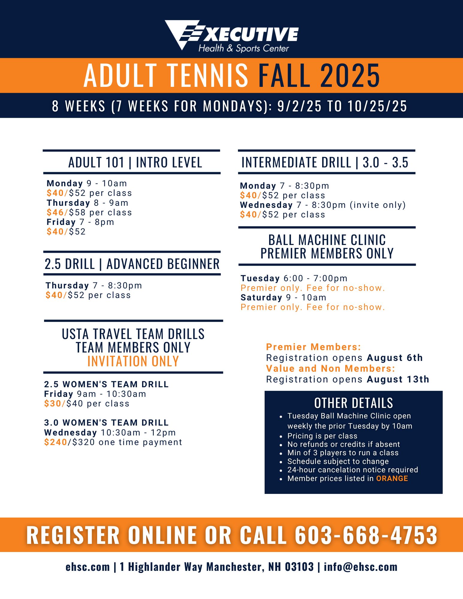 *Premier Members have access to our online court reservation option. Value members must call to make court reservations. Please refer to our rules page for more information